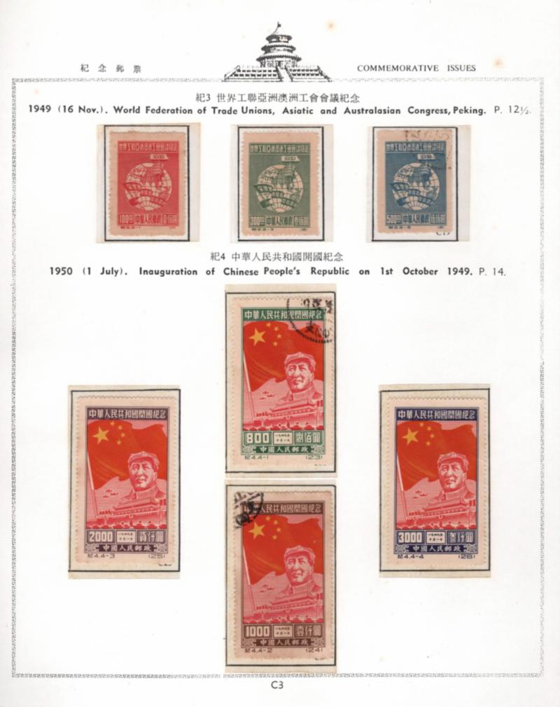 China 1949 Inauguration of Chinese People's Republic 4 stamps + World Federation of Trade Union 3 stamps (Image)