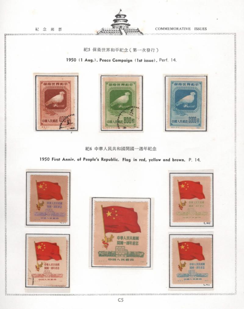 China 1950 First issue of Peace campaign 3 stamps + 5 stamps of 1st Anniversary of People's republic (Image)