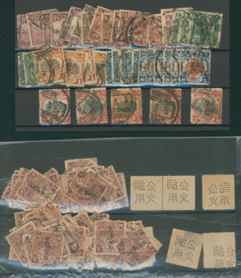 China 1924-1936 Second Peking Print Junk Overprinted "Limited For Use in Sinkiang Province " Includes many 20c. stamps with the words "For official documents" perfin on them. used (Image1)
