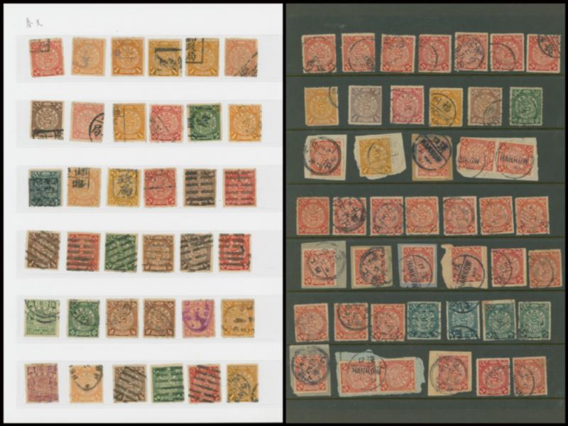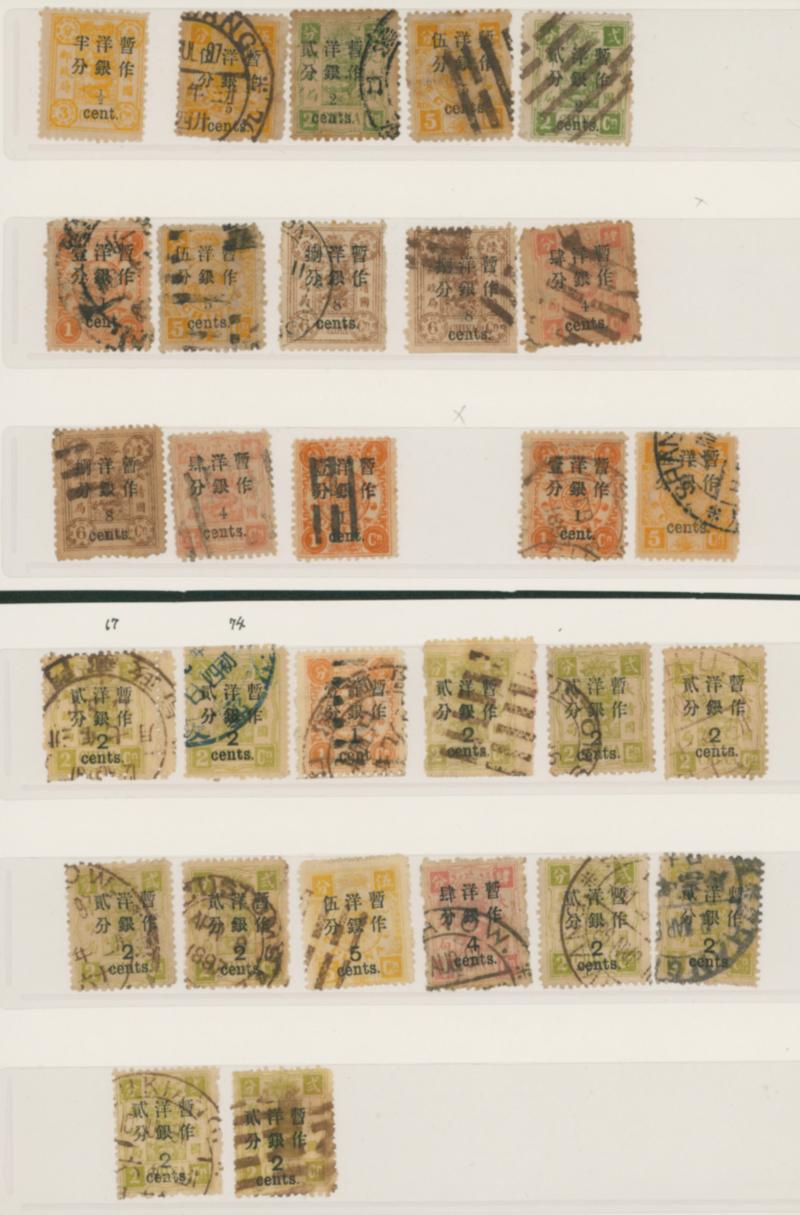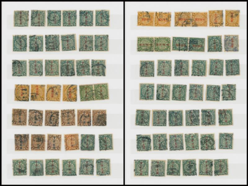 China 1899-1910 Coiling Dragon used stamps lot. They are classified according to the type of postmark. 2 leaves, 80 stamps used (Image1)