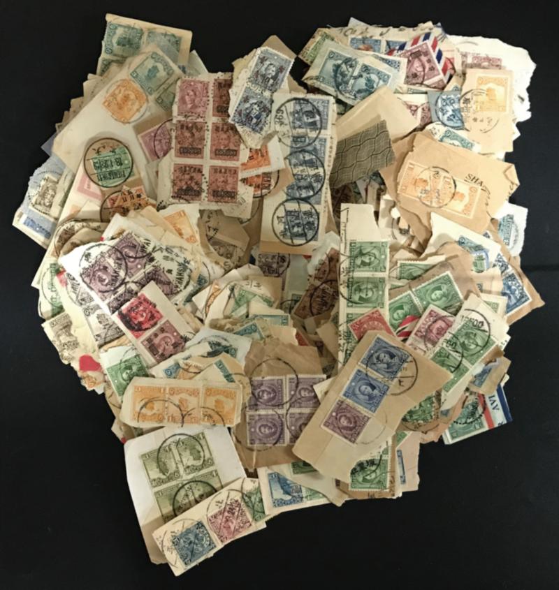 China Off-paper mainly consists of junk stamps. , 340 gram used (Image1)