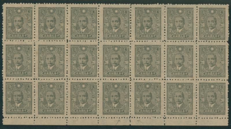 China 1942-1944 Central Trust Print SYS 20c perf. 11 unused block of 21 (Image1)