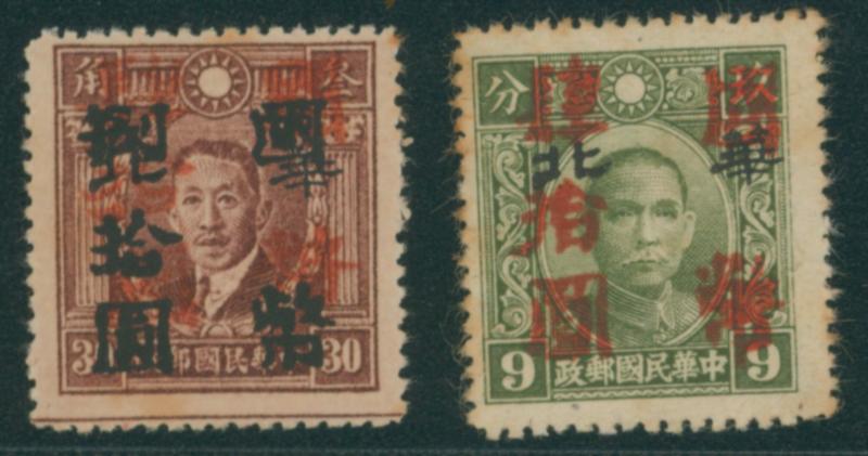 China 1945 Kiaotung Surcharge $40/9c., $80/$40/30c. Unissued unused stained, (Image1)