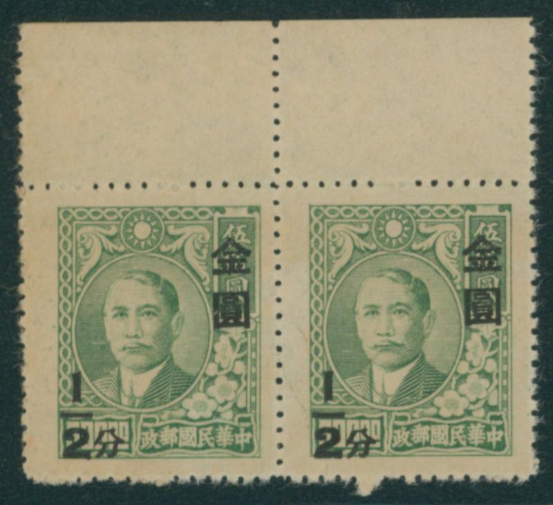 China 1948 Shanghai Dah Yeh Surch. 1/2c./$500 pair. right stamp "1" of "1/2" inverted. unused good condition, (Image1)