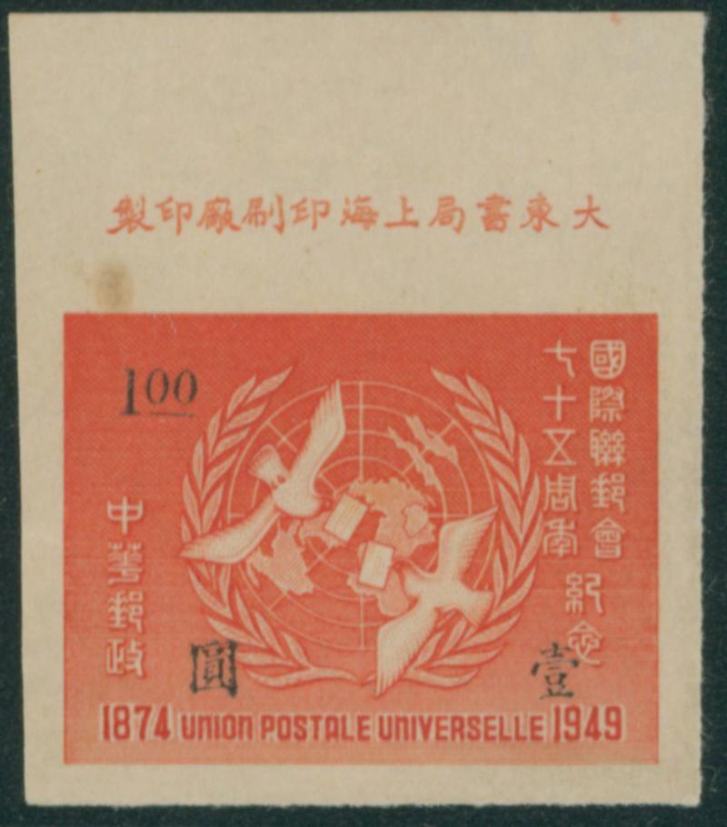 China 1949 75th anniversary of the Universal Postal Union Commemorative Issue with imprint. unused (Image1)