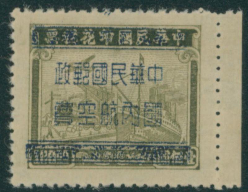 China 1949 Unit and Silver Yuan Stamps Kwan Tung ”Domestic Air Mail" on $100 olive. unused good condition, (Image1)