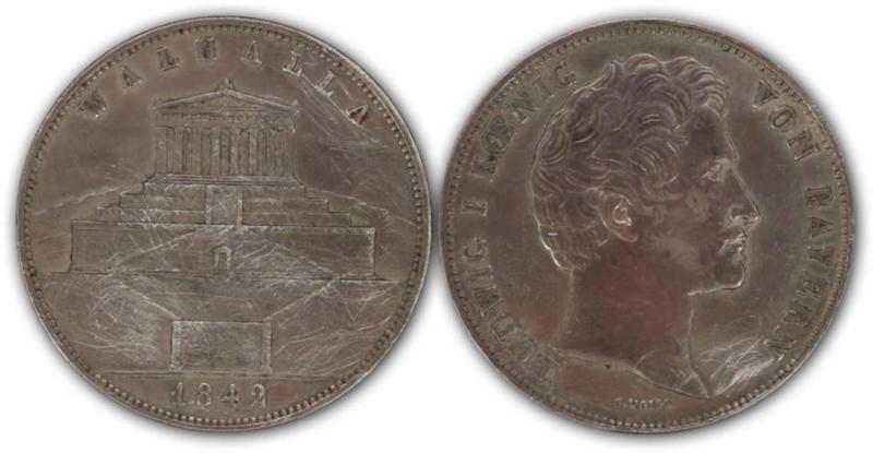 BAYERN: 1842, Vereinsdoppeltaler, Walhalla, Kratzer, ss (Image)