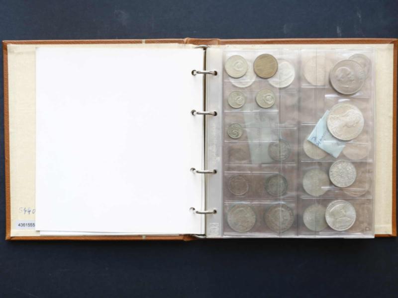 SILBERPOSTEN: 1874/1970 ca, schöner Silberposten im Buch, z.B. 3 mal dt. Kaiserreich 1 Mark, 5 mal 2 RM, 11 mal 25 ATS, 10 mal 50 ATS, 2 und 5 Kronen Österreich, Maria Theresientaler und weitere Silberstücke (Image)