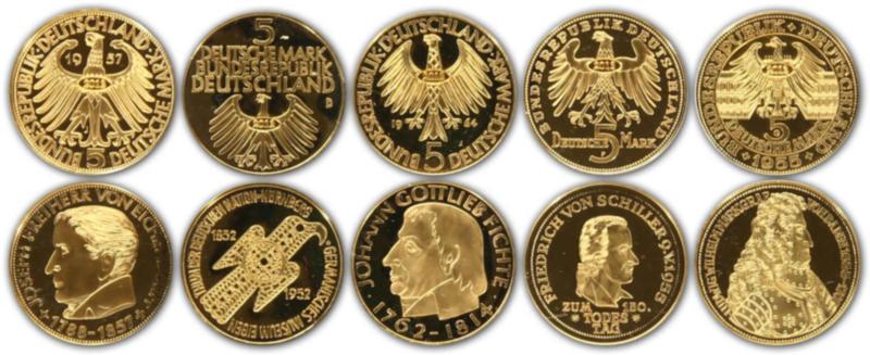 DIE ERSTEN FÜNF: 1952/64, die berühmten "Ersten Fünf" 5 Sonder DM, Germanisches Museum bis Fichte in vz (Image)