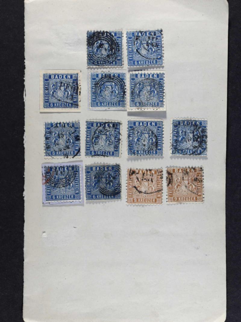 BADEN: 1851/68, gemischter Posten, überwiegend gest., etwas ungebr. und auf Briefen, ab Mi-Nr. 1/4 gest. gesammelt nach Farben und Abstempelungen, dazu Mi-Nr. 19, etwas Landpostporto in beiden Erhaltungen sowie einige frankierte Briefe, interessanter Posten, hoher Katalogwert, überwiegend gute Qualität (Image)