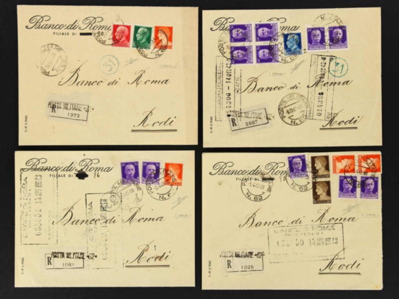 AEGEAN ISLANDS: 1942/43, four registered covers sent from Samos island to Rodi during the Italian Occupation showing "Posta Militare N.62" postmark, all signed Sorani (Image)