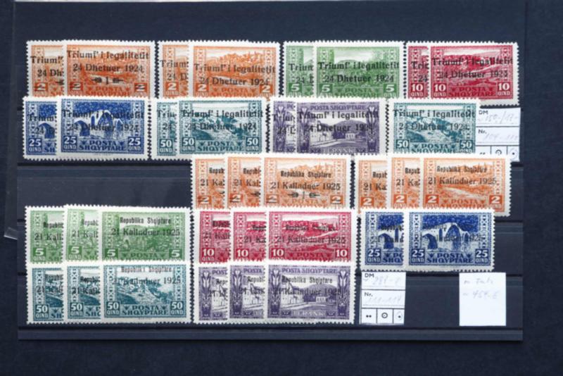 ALBANIEN: 1924/45, gemischter Bestand, postfr./ungebr. und gest., nicht kpl., aber dabei div. bessere Ausgaben ab Mi-Nr. 90/94 gest., dabei div. kpl. Überdruck-Ausgaben und Mi-Nr. 284/97 und 368/74 in 4er-Blöcken ungebr./postfr. und guter Teil Portomarken, auf Steckkarten, hoher Katalogwert, überwiegend saubere Qualität (Image)