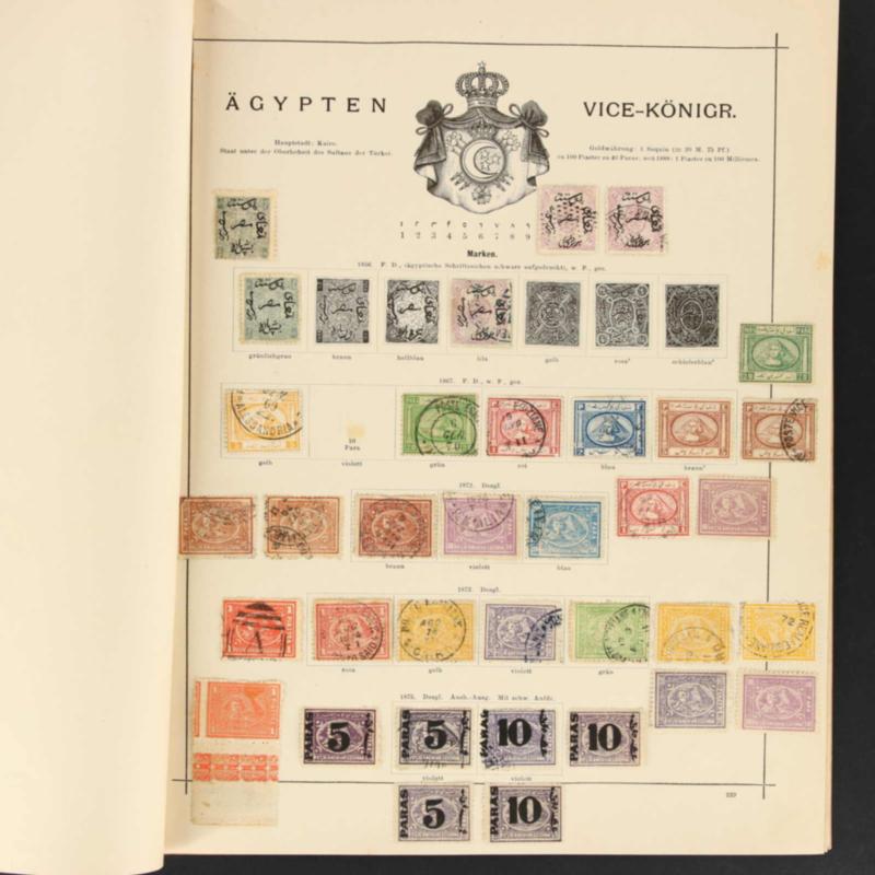 ÄGYPTEN: 1866/90, gemischte Sammlung, überwiegend gest., etwas ungebr., ab Mi-Nr. 1 a, b, dabei 8/13 ohne Nr. 9, hier mit Nr. 10 und 13 ungebr., Mi-Nr. 14/20 mit Nr. 17 und 19 ungebr., Mi-Nr. 21/22 ungebr. mehrfach unf folgende Ausgaben inkl. etwas Portomarken, im Anhang die 4 Werte der Suez-Kanal-Gesellschaft als gest. Ganzfälschungen (nicht gerechnet), auf 5 alten Albenblättern, hoher Katalogwert, überwiegend gute Qualität (Image)