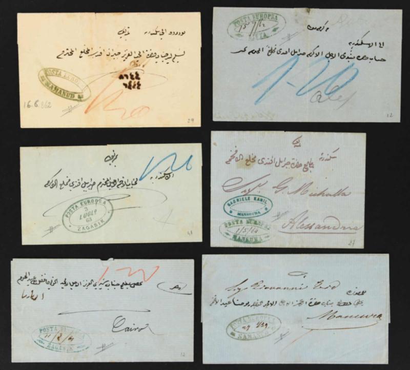 POSTA EUROPEA: 1861/68, 17 covers, most of them sent to Alexandria, one to Mansura and other to Cairo showing Zagasik, Mansura, Cairo, Tanta, Samanud, Damiata,Zifta and Samanud postmarks, great lot for specialist (Image)