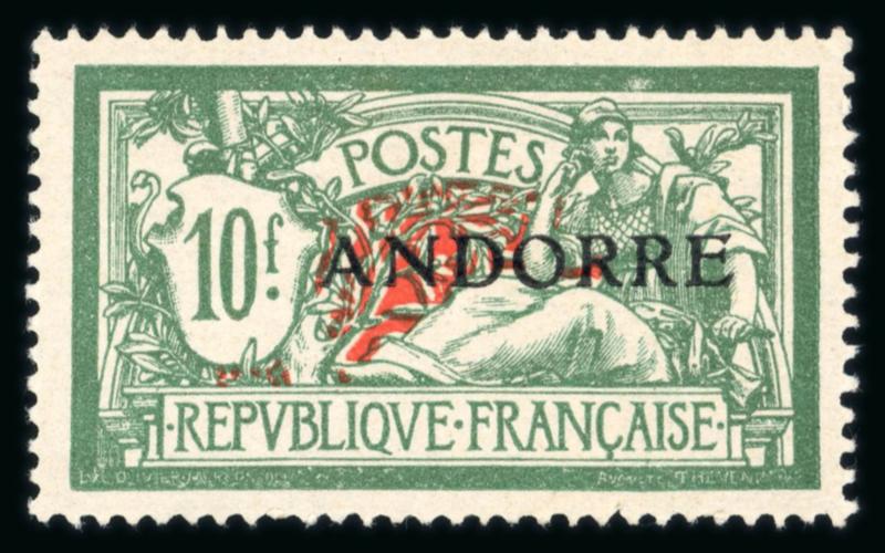 1961, Andorre Y&T n°161A, variété de piquage à cheval sur 2 exemplaires neufs ** (paire détachée), peu courant de manière aussi marquée, superbe. (Image)
