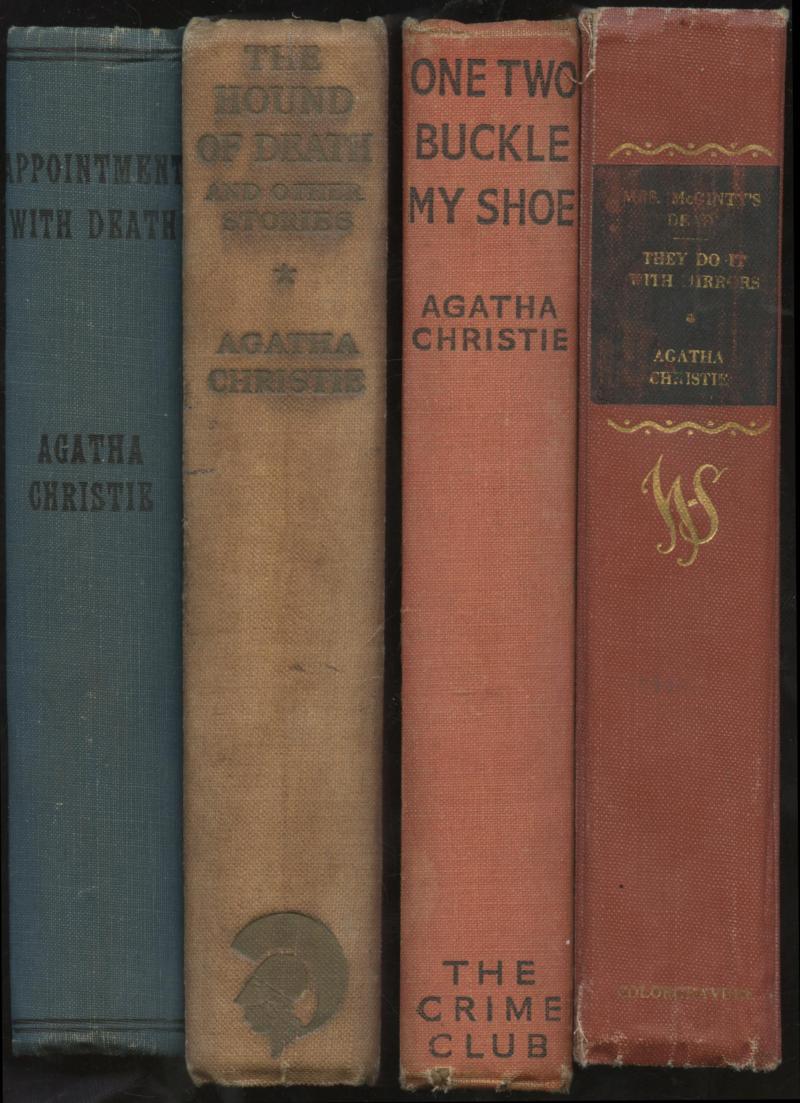 LITERATURE: Agatha Christie First editions of 'The Hound of Death and Other Stories' [Odhams Press, London, 1933]; 'Appointment With Death' [The Collins Crime Club, London, 1938]; 'One, Two, Buckle My Shoe' [The Collins Crime Club, London, 1940]; also later edition of 'Mrs McGinty's Dead and They Do It With Mirrors' [Melbourne, 1954], none with dust-jackets, mainly Fair condition.