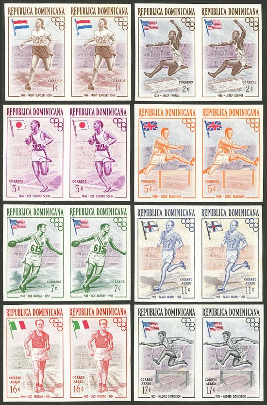 Yvert 457/461 + A.108/110, 1957 Melbourne Olympic games, set of 8 IMPERFORATE PAIRS, MNH, excellent quality! (Image)