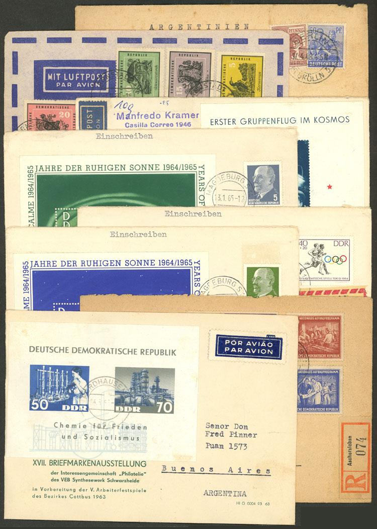 8 Covers sent to Argentina between 1948 and 1965, some franked with souvenir sheets, attractive lot! IMPORTANT: Please view ALL the photos of the lot, because all the material has been scanned (both sides)