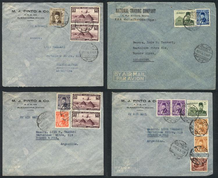 Airmail cover sent to Argentina on 19/JUN/1941, with Egyptian censor label and marking, and arrival backstamp of 20/AU. Despite being an airmail cover, it arrived after 2 months due to the problems in postal communications during World War II, very interesting! (Image)