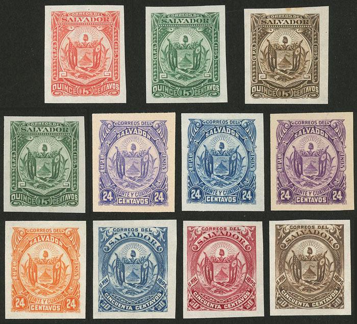 Yvert 97 + 99 + 101, 1895 Coat of arms 15c., 24c. and 50c., color PROOFS, 11 different, very fine quality! (Image)