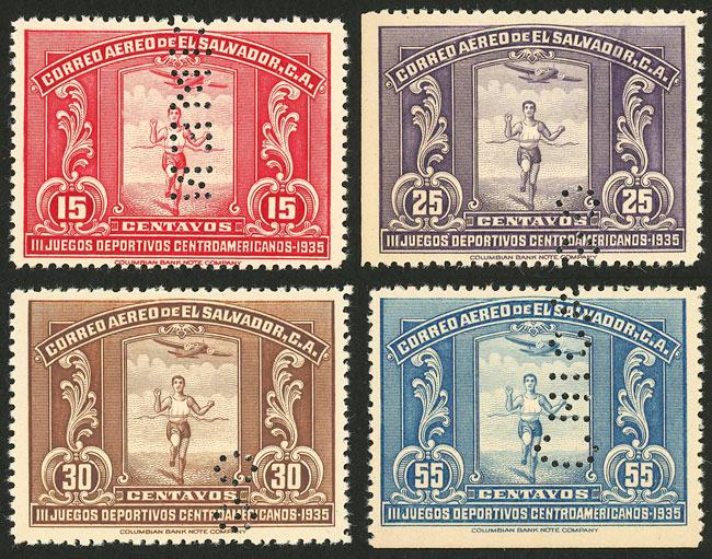 Yvert 31/34, 1935 Sport, 4 values of the set perforated "CHICAGO" or "SPECIMEN" (specimens), excellent quality! (Image)