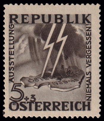 1946 AUSSTELLUNG - NIEMALS VERGESSEN!. Due francobolli NON EMESSI della Mostra Antifascista (Mi. VI+VII, Unificato nn. 645A/B), linguellati. (Image)