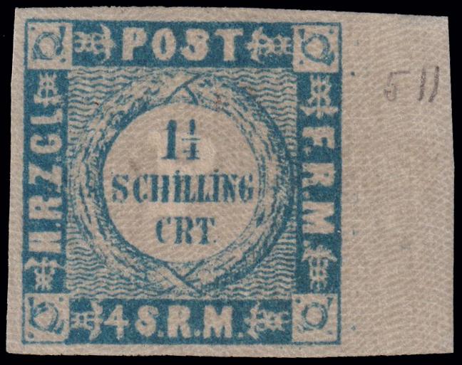 ALTDEUTSCHLAND - Schleswig-Holstein. 1864 1 1/4 sch. blau weit gewellter grund (Mi. 5 II), ungebraucht. Attest Jakubek (1987) und Moller (2015). Einwandfrei. (Image)