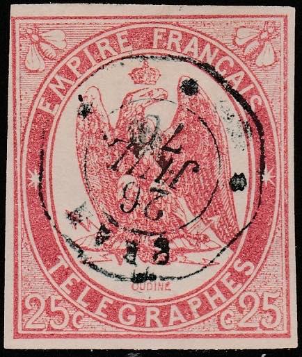 Francia. 1868 - Telegrafici, 25 c. rosso carminio, n. 1. Firma E. Diena. Cat. € 170,00. SPL (Image)