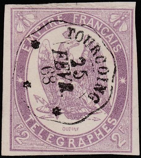 Francia. 1868 - Telegrafici, 2 f. violetto, n. 4. Cat. € 225,00. SPL (Image)
