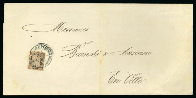 10pa Brown, single used on 1867 folded printed matter to Cairo, tied by POSTE VICE-REALI EGIZIANE / ALESSANDRIA / 1.GEN.67 cds in black, a very attractive and rare printed matter usage. (Image)