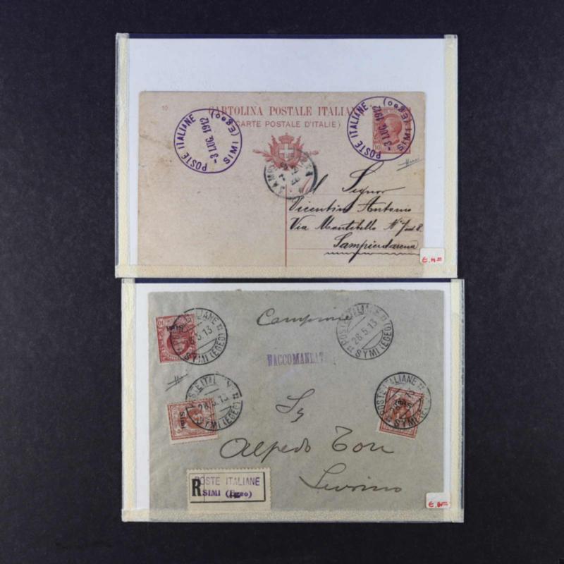 Simi Island, postal stationery card sent from Simi to Italy and registered cover bearing "Simi" overprinted stamps sent to Livorno (Image)