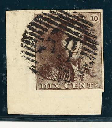 1849, 10 C. braun, Bogenecke unten links etwas ungewöhnlich geschnitten, entwertet durch Nummernstempel "58", einwandfrei, Attest Sorani (Image)