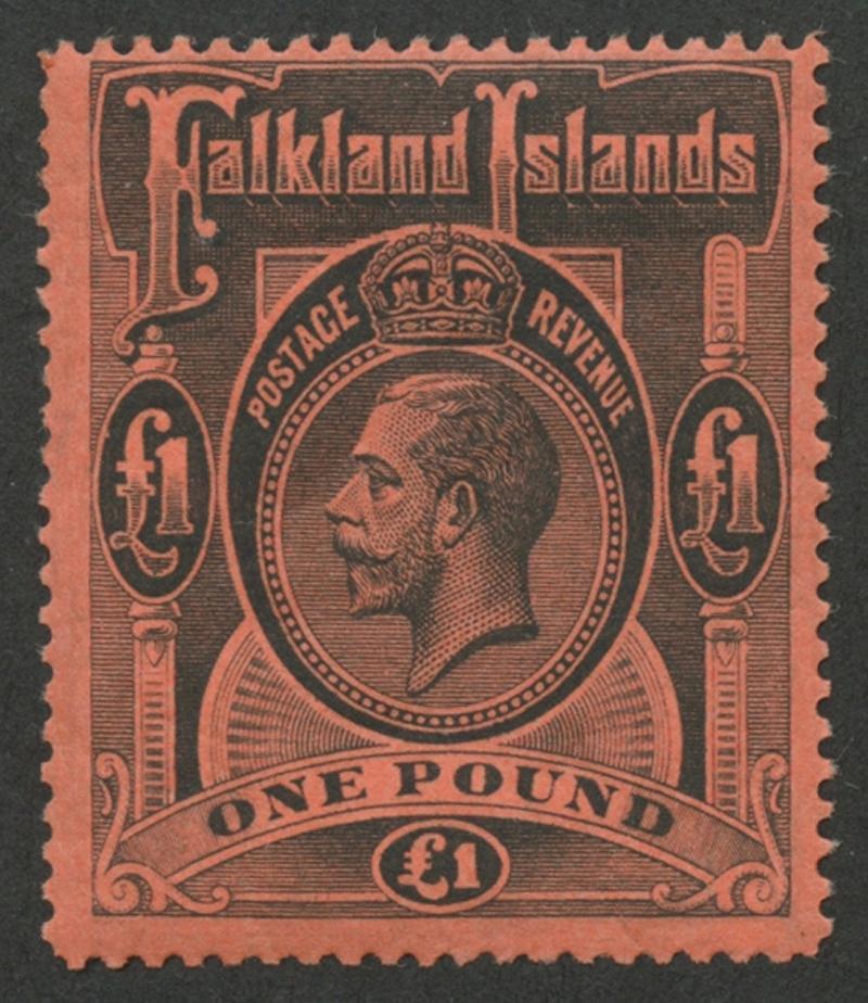 1912-20 KGV Heads Multiple Crown CA Wmk £1 black/red SG 69, unmounted, Cat £550+ for mounted. (Image1)