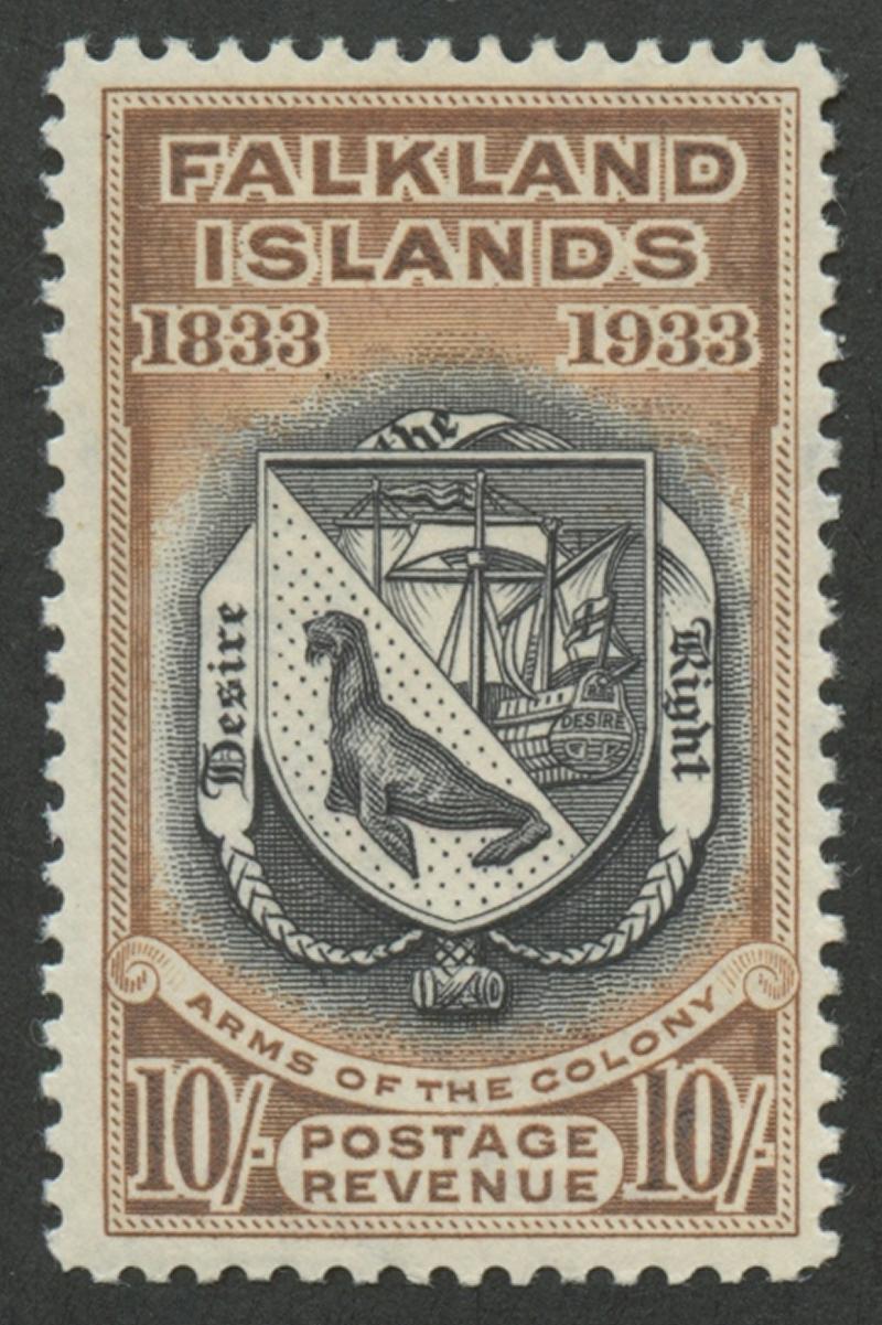 1933 Centenary of British Administration 10/- Coat of Arms SG 137, lightly mounted, Cat £900. (Image1)