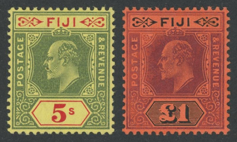 1906-12 KEVII Keyplates New Colours Multiple Crown CA Watermark ½d to £1 purple & black/red set SG 118-124, fresh colours, a couple including the 5/- with small hinge remainders, the £1 very lightly mounted, Cat £400. (Image1)