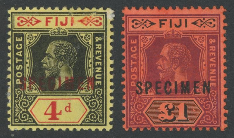 1912-23 KGV Keyplates Multiple Crown CA Watermark ¼d to £1 purple & black/red Die I overprinted 'SPECIMEN' SG 125s-137s including 4d Die II plus 4d Die I with Overprint in Red (some adhesion on reverse), the 5d with a rounded corner otherwise fine to very fine lightly mounted or with small hinge remainders, Cat £500+.