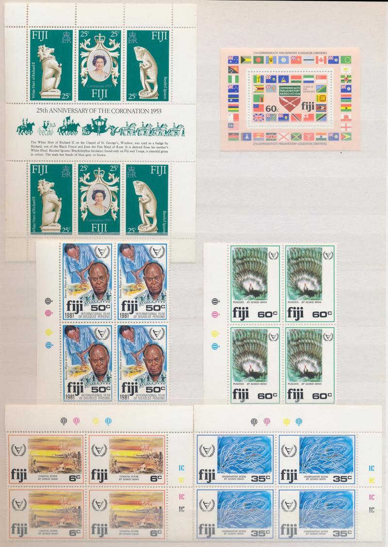 1953-2005 QEII collections in two Seven Seas hingless albums, and stockbook with 1978-96 blocks of four, lots of duplication, mostly unmounted, Cat £3000+. Weighs 10kg.