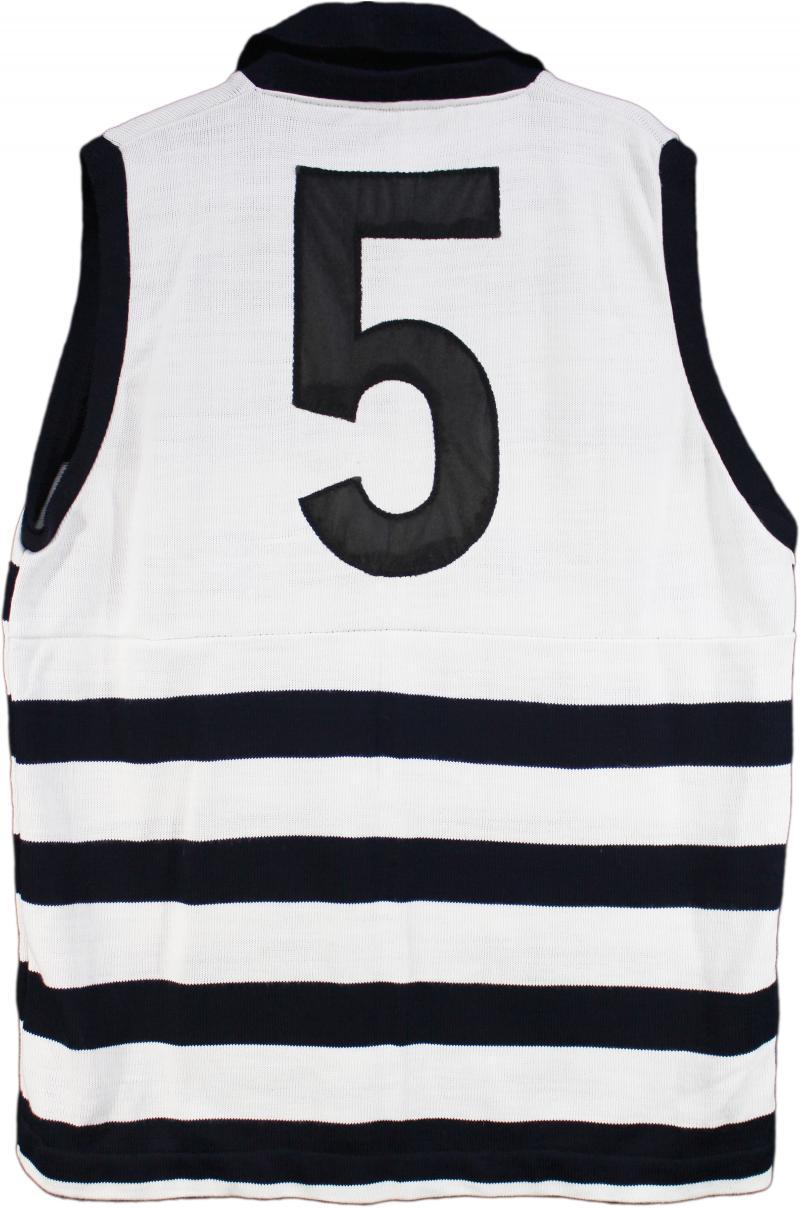 Clothing football jumpers from Brisbane, Carlton (2), Collingwood (2), Geelong (3), Giants (4), Hawthorn, (12), Gold Coast, Melbourne (3), Richmond (4), North Melbourne, St Kilda (5), Swans (6), Western Bulldogs (3) & others (5), most are adult sizes but some childrens; also range of club T-shirts, jackets, pants & other training & supporters' clothing; few other sports noted signed cricket shirt, mainly Fine.