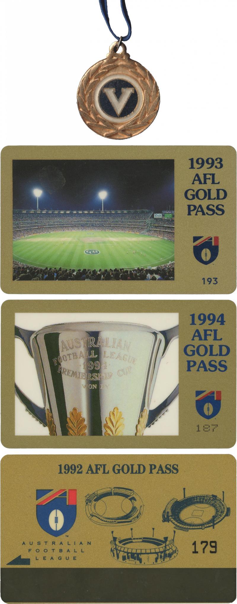 Oddments including AFL Gold Pass (20); VFL Member's Reserve Season Ticket 1987; VAFA membership badge number "3"; member's cards for Sydney Swans (3) & VFA; badge, key rings (6), books (4); other badges (5); tickets Fenech v Nelson, 1997 Soccer World Cup Qualifier (8); Marlboro Grand Prix Guides (2) 1949-89 & 1950-90, mainly Fine/Very Fine.
