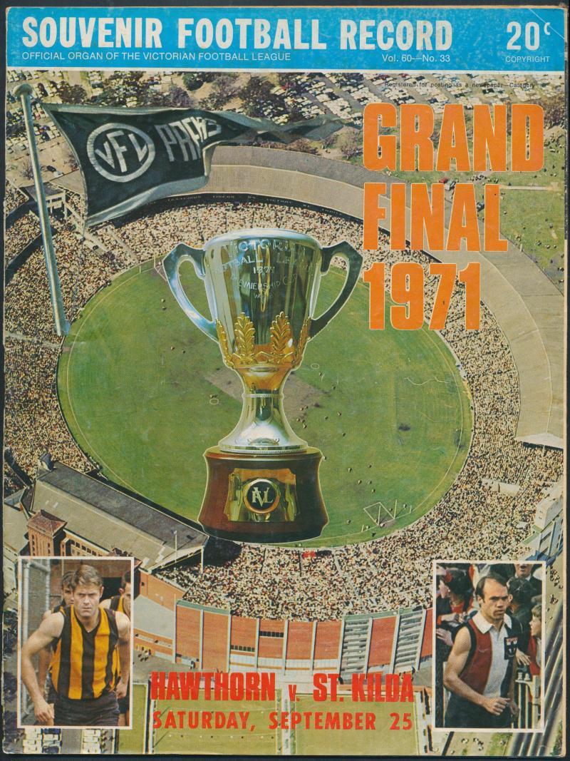 Records 1971-1995 collection of 'Football Record's with Finals (19) & Grand Finals (21); plus 1973 Davis Cup programme, mainly Fair/Fine.