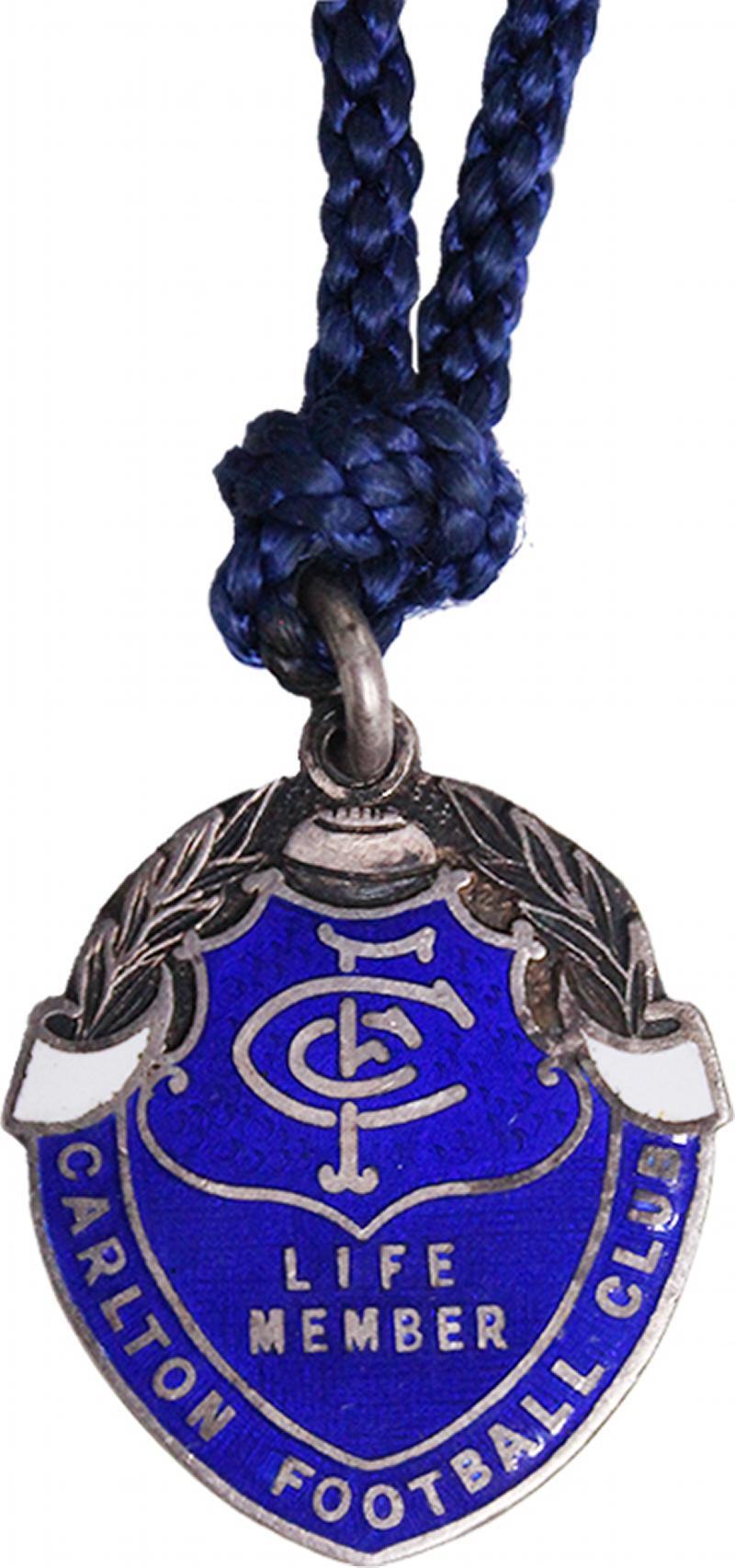 CARLTON: Badges (8) including Life Member (2) one with number "69" on reverse; set of 12 buttons in presentation case; 1981 Grand Final medallion; key ring; ephemera (4) including 'Carlton Football Club, Football & Social Fixtures, Season 1947'; Carlton Babushka Dolls - Judd, Gibbs, Scotland, Murphy & Waite, mainly Fine.
