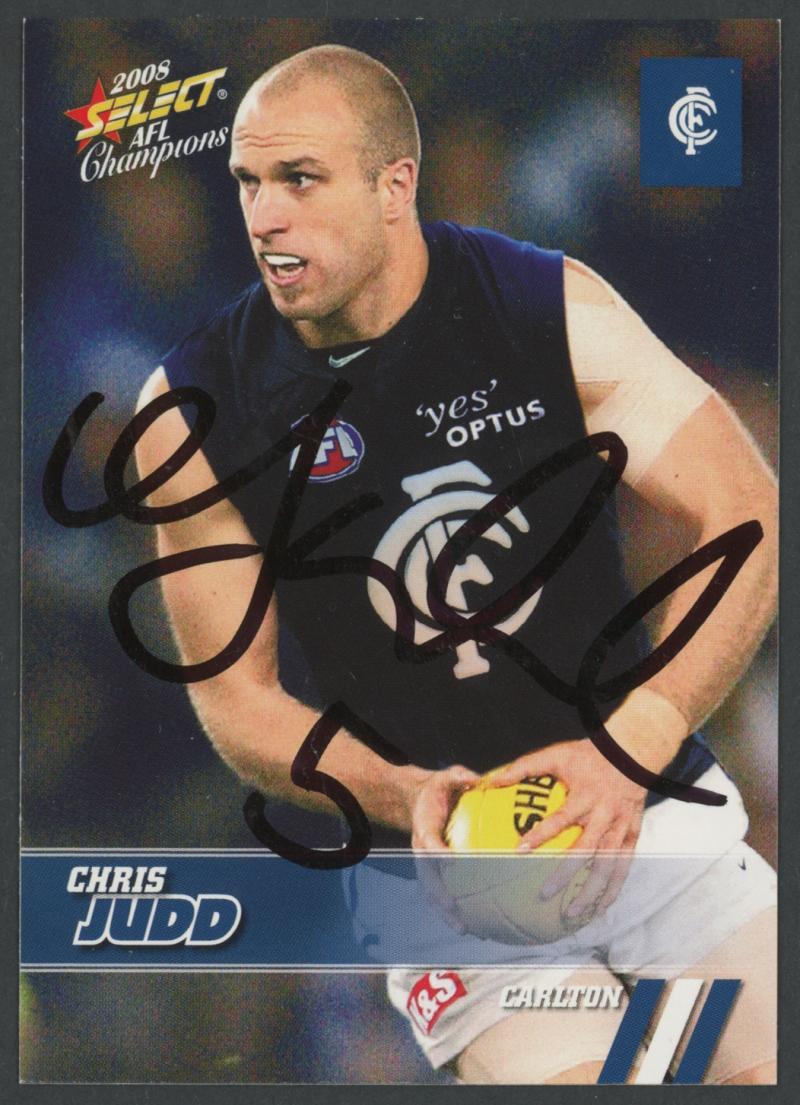 CARLTON: Collection of signed football cards (95); names include Chris Judd, Eddie Betts, Bryce Gibbs, Heath Scotland, David Teague, Dale Thomas, Ed Curnow, Sam Docherty, Brendan Fevola, Charlie Curnow, Harry McKay, mainly Fine/Very Fine.