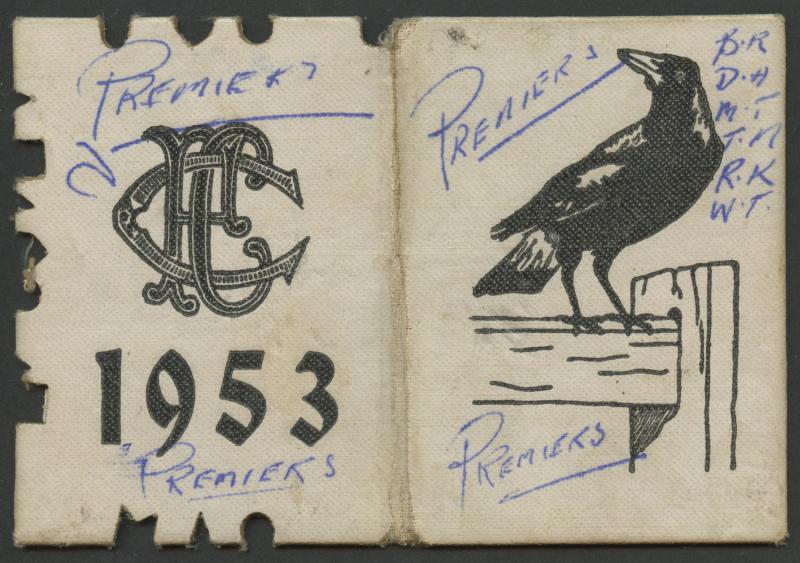 COLLINGWOOD: 1953 Member's Season Ticket with fixture list & hole punched for each game attended (some writing on covers & inside); plus membership badges (23) from 1961 to 1983; Dinner Dance programme; 1953 Davis Cup tickets (2), mainly Fair/Fine.