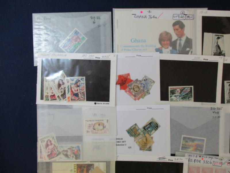 Small Box Holding Couple 100 Dealer Cards/Glassines - We noticed French Colonies (Polynesia, FSAT), Iceland (MNH with duplication), Costa Rica, Austria, Hong Kong used, and many others. Includes some "eclectic" stuff also like Nagaland, Fujeira, Somali Republic CTOs. Mixed condition, but worth a gamble. (Est $90-120) (Image)