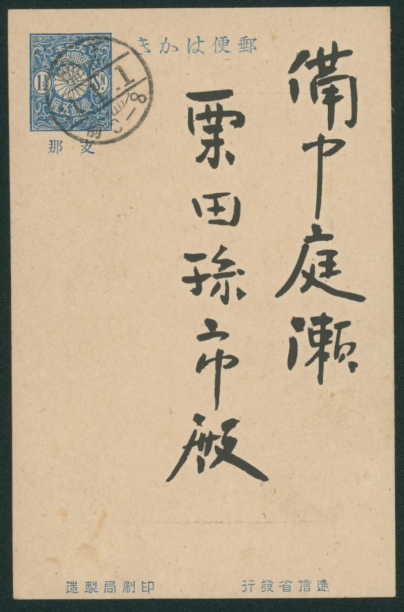 China Disp. 1.5 Sen postal card comb cds 1922-01-01 Shimonoseki new year greeting mail, PAQUEBOT, (Image1)