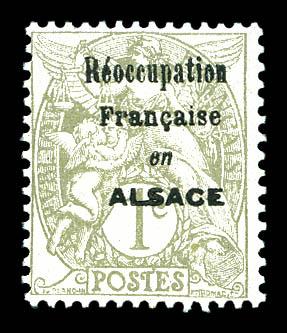 N°107, 1c gris surchargé Réoccupation Francaise en ALSACE. TB (cote Maury) Qualité: * Cote: 475 euros (Image)