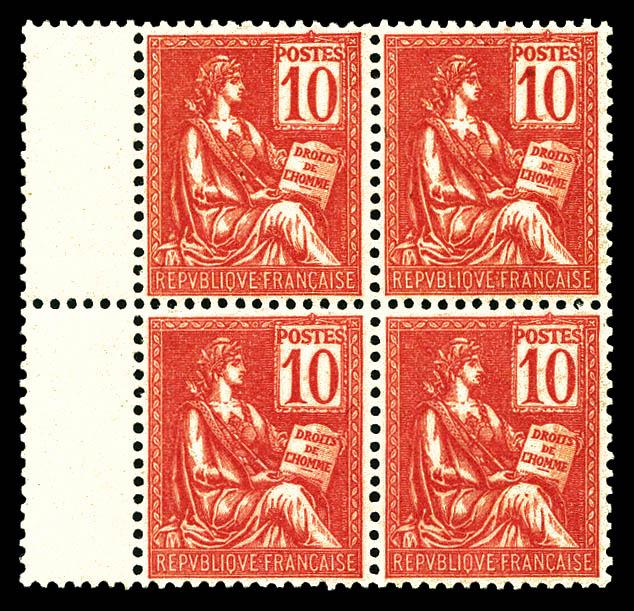 N°116, 10c Mouchon Type II en bloc de quatre bdf, très bon centrage. SUP (certificat) Qualité: ** Cote: 2700 euros (Image)