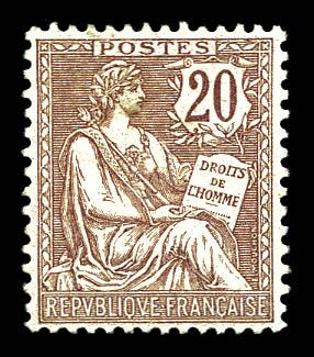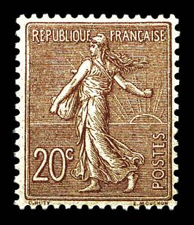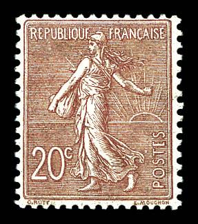 N°131, 20c Semeuse: brun-lilas, très bon centrage. SUP Qualité: ** Cote: 390 euros (Image)