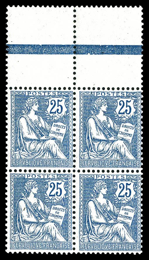 N°127, 25c bleu en bloc de quatre bdf. TTB (certificat) Qualité: ** Cote: 2100 euros (Image)