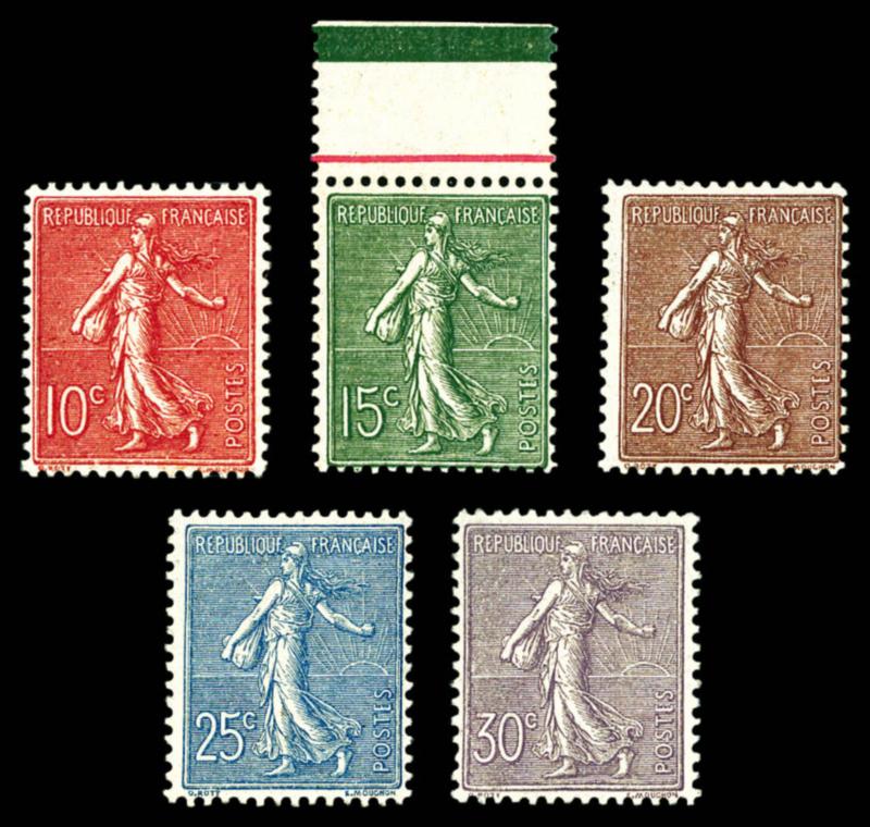 N°129/133, Série Semeuse, les 5 valeurs SUP (certificat) Qualité: ** Cote: 1020 euros (Image)